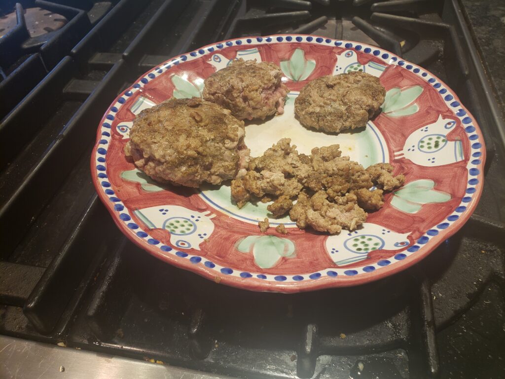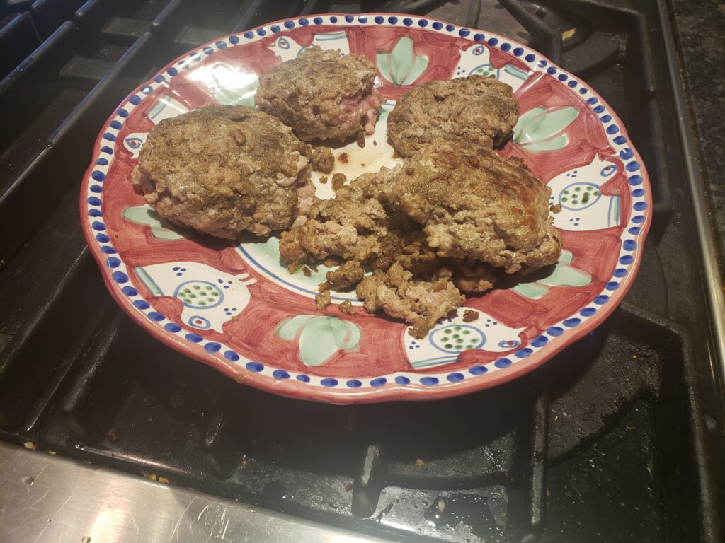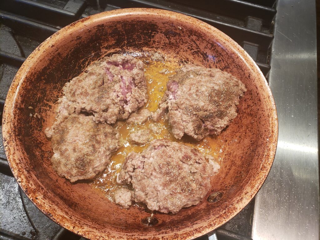 Lamb Burgers cooking in Olive Oil. Cross-Regional. Public Domain Images. From the Collection of the owner of TARTARIA THE WEBSITE.